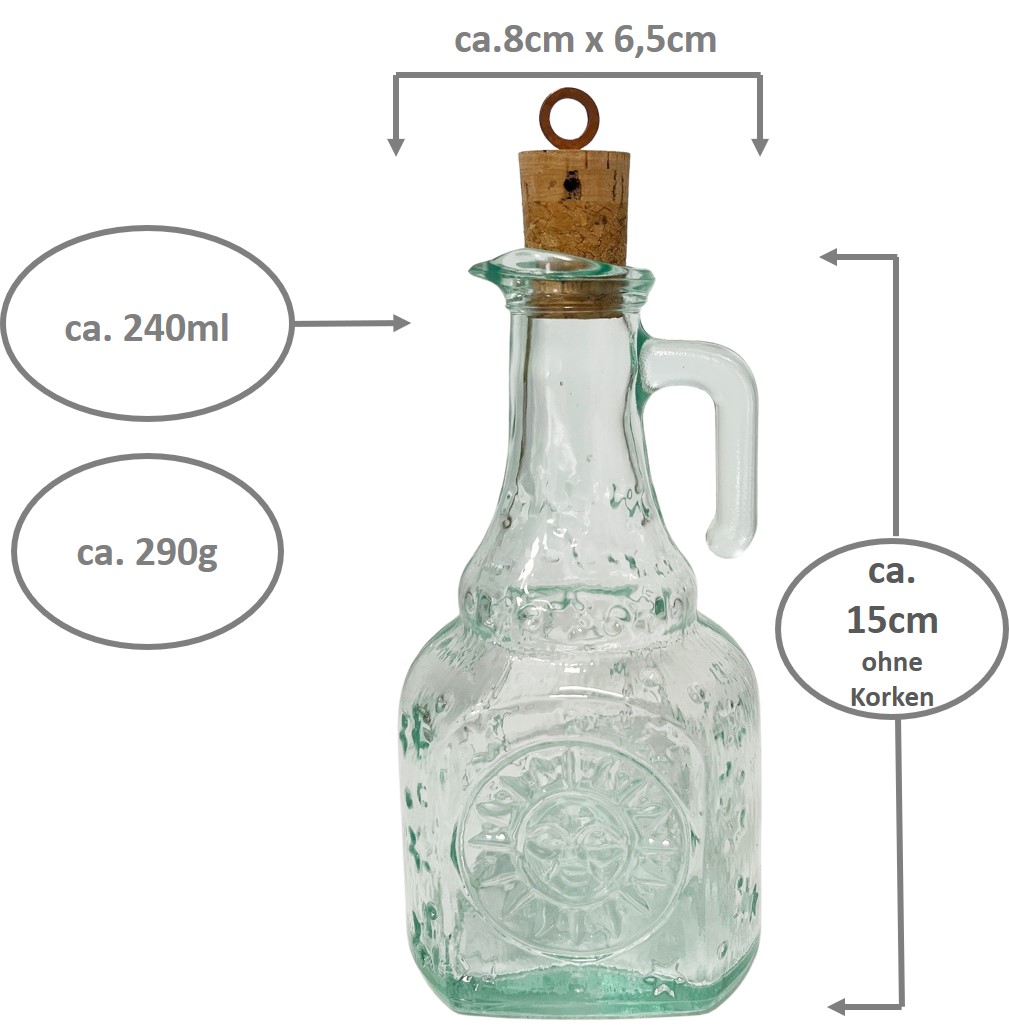 Helios Essig- und Ölkaraffen 240ml im 2er Set – recyceltes Glas mit Korkstopfen
